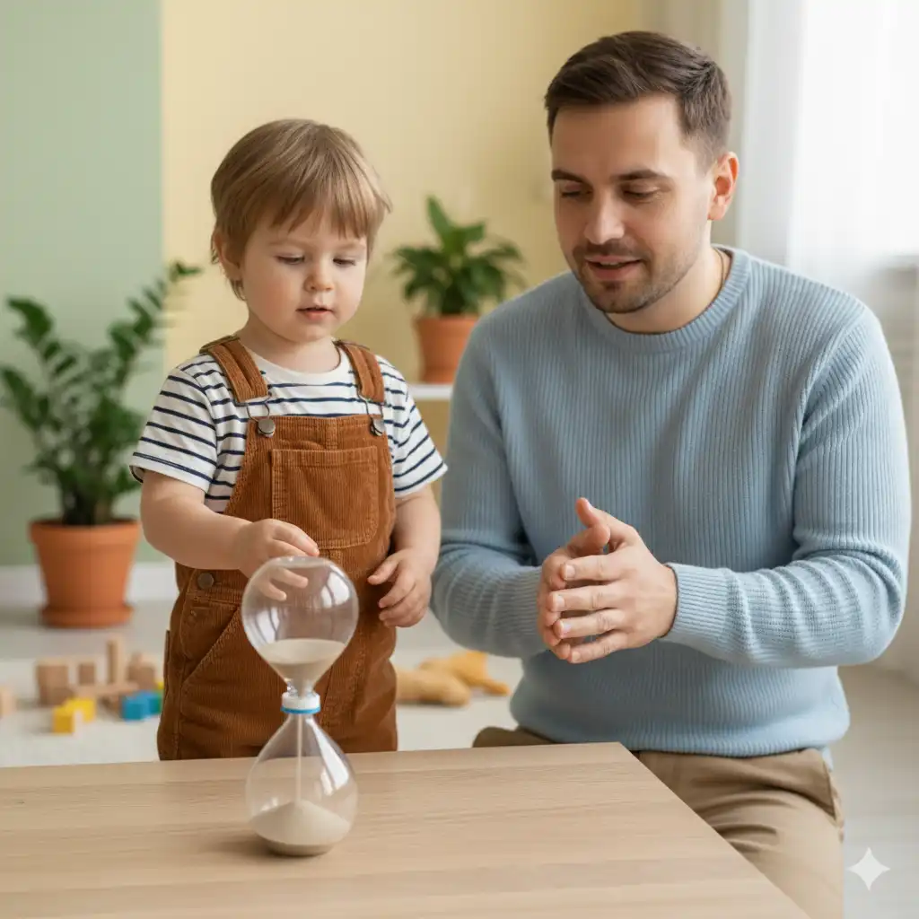 Astuce parent : Fabriquez ensemble un sablier maison. Regardez le sable descendre et laissez votre enfant compter à voix haute. Ce petit rituel devient un jeu d’attente positive !